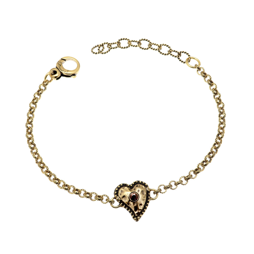 Bracciale realizzato in ottone dorato con piccolo cuoricino con prezioso di granato.