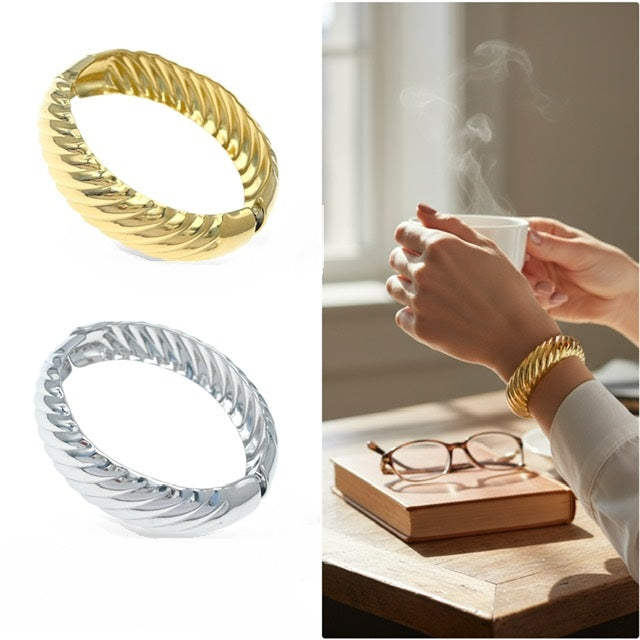 Bracciale donna rigido tortiglione apribile in acciaio inossidabile