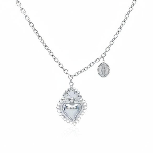 Collana sacro cuore, cuore sacro in acciaio inossidabile
